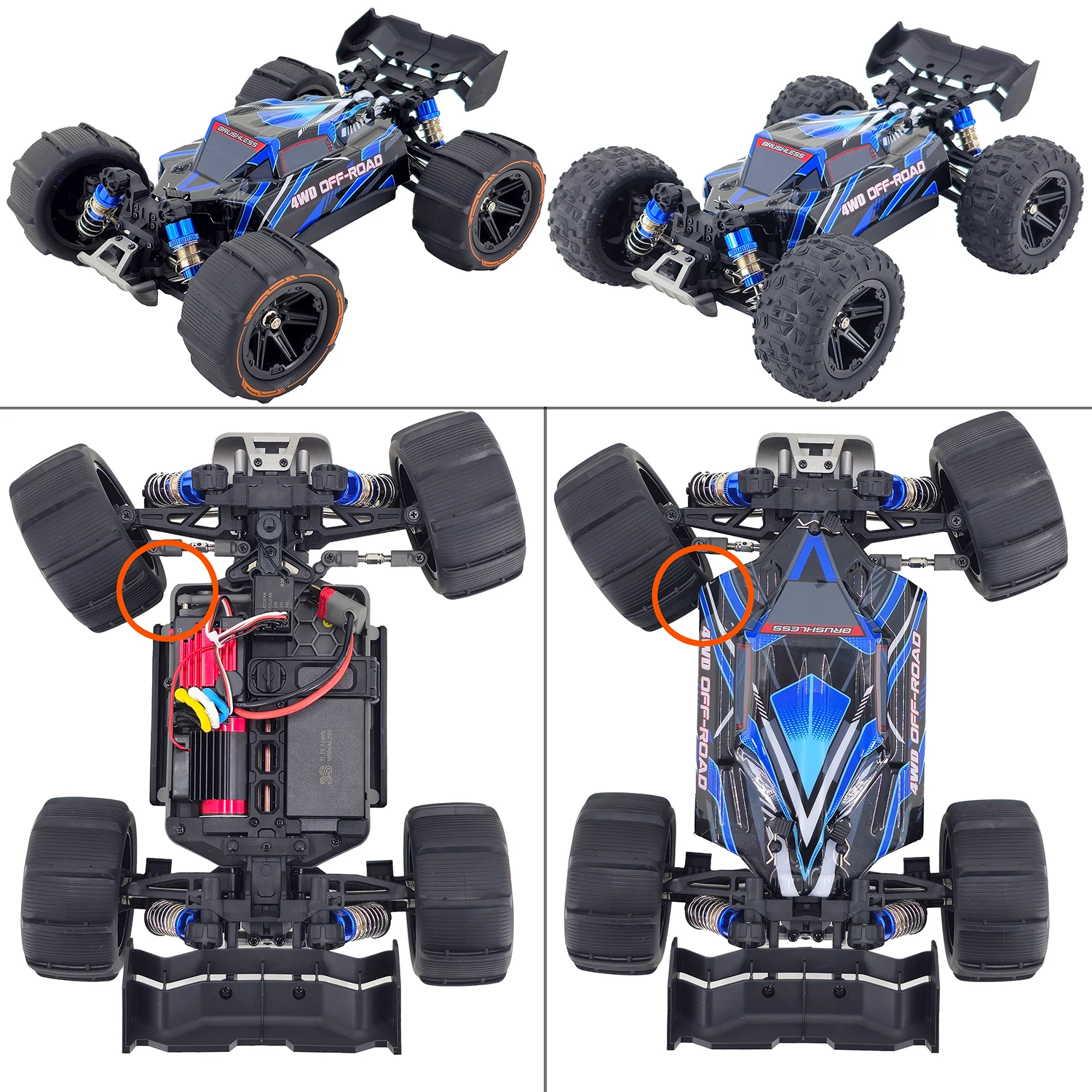 For other carmodels,pleasecompare the wheel dimensions to determine if they are suitable for your car.For this car (Hyper Go 16207), the wheels will get stuck on the car shell when turning. If you want to purchase this tire, you need to use a hot air gun or scissors to modify the car shell.