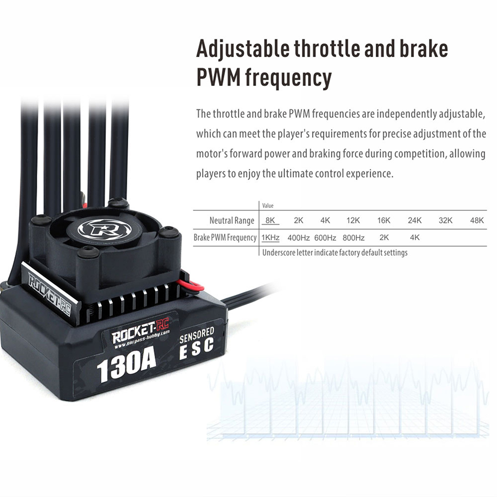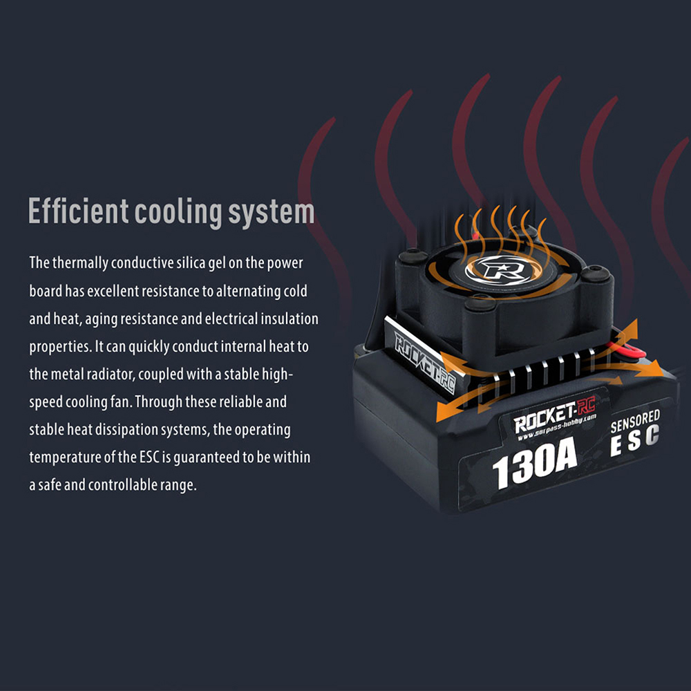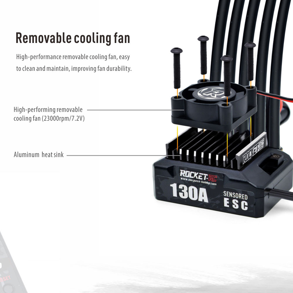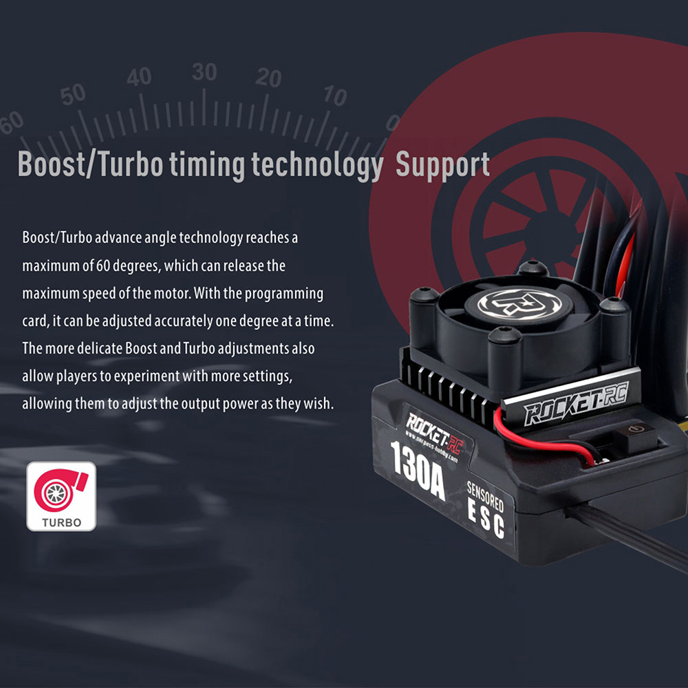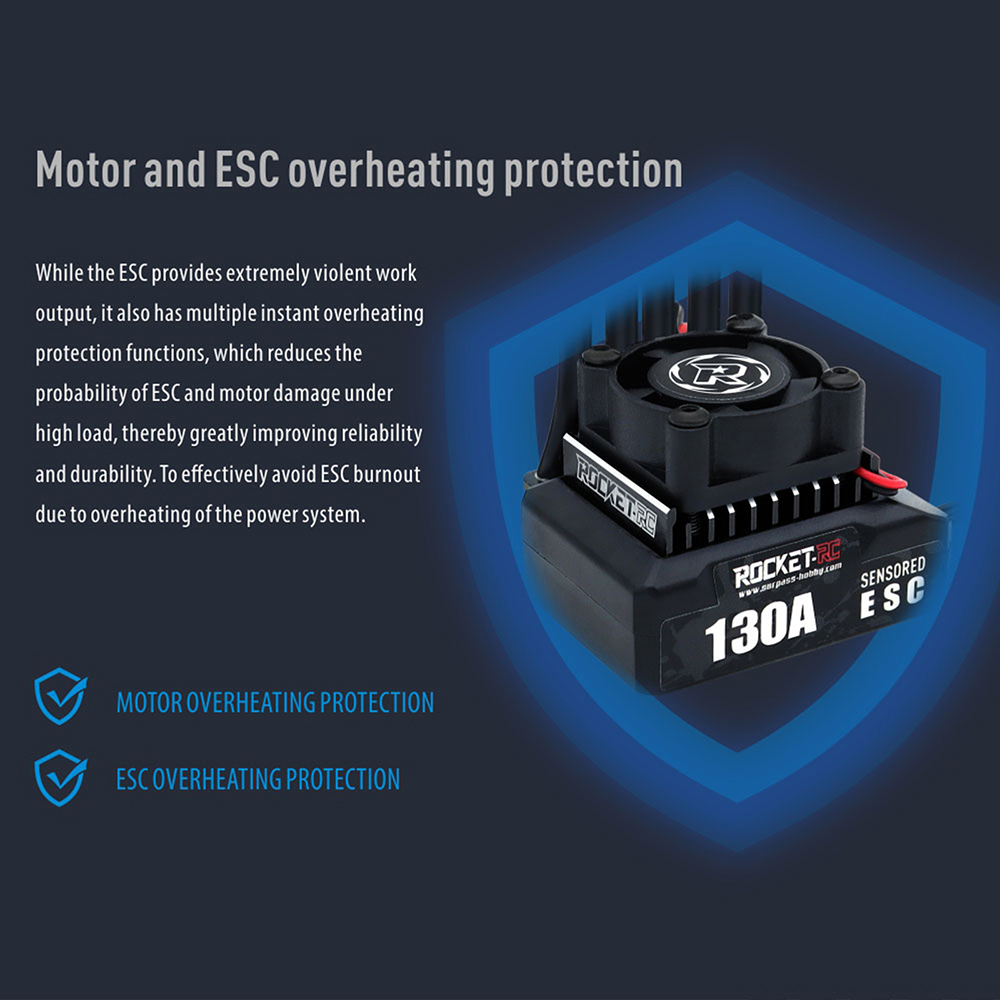 Description: Rocket-RC 540 V3 Brushless Sensored Motor(5.5T 6.5T 8.5T 10.5T 13.5T 17.5T 21.5T) with 130A Brushless Sensored ESC,switch between racing and drifting modes,which is suit for 1/10"scale RV car. Simplify the operation of the difficulty,outstanding quality.